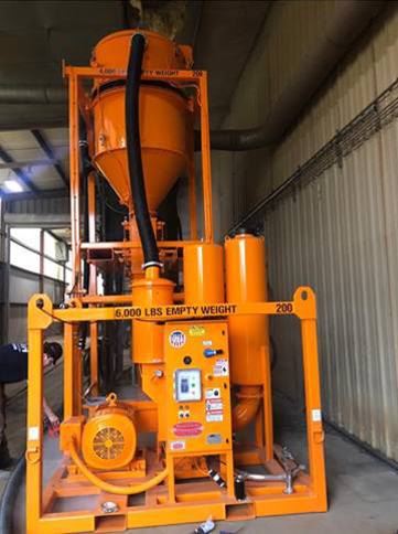 Commonly 3 options are available for collecting the spent abrasive.- Into a 44 gal. drum.